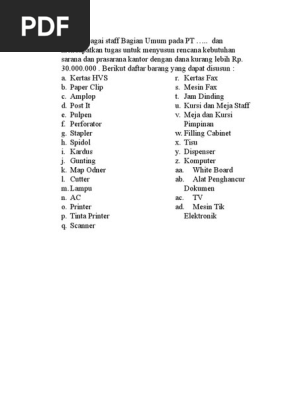 Soal administrasi sarana dan prasarana. Barang yang tersedia di gudang penyimpanan kepada jurusan otkp. Berikut informasi sepenuhnya tentang soal otomatisasi tata kelola keuangan. Penulis menerima saran dan kritik yang membangun. Suatu proses analisis dan penetapan kebutuhan yang diperlukan dalam proses pembelajaran sehingga muncullah istilah kebutuhan yang diperlukan (primer) dan kebutuhan yang menunjang.
